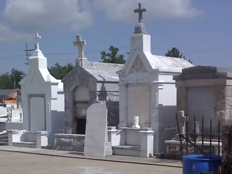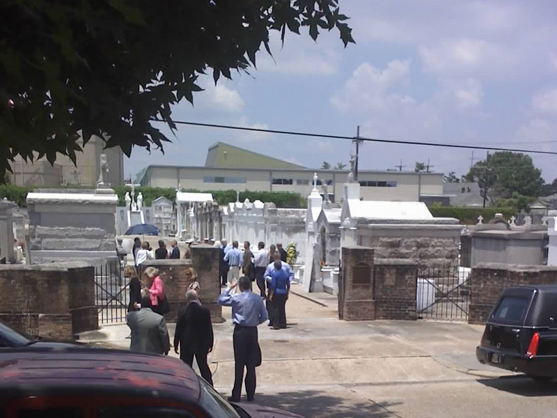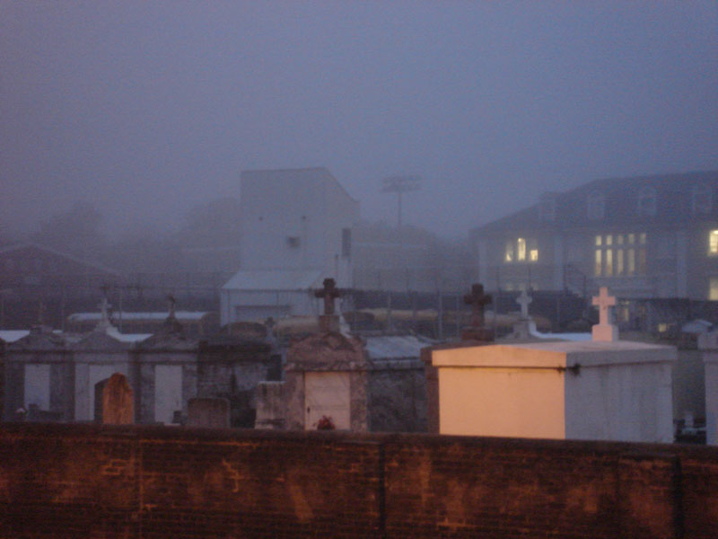 Will I at least recover some of my badass rep through a strategic selection of summer reading material? Nope. On the recommendation of a friend, yesterday I bought a total chick book called “Come Back: A Mother and Daughter's Journey Through Hell and Back.” The cover flap describes it as “An unforgettable story of love and transformation, [with] a heart-wrenching and humorous portrayal of the primal bond between mother and daughter that will resonate with women everywhere.” All the praise on the back cover is quoted from various dames, starting with the claim that this book “speaks compellingly to women of all ages.” Standing in the bookstore aisle, I felt mortified. I couldn’t bring myself to approach the counter with a mother-daughter memoir in hand. Like an underaged kid hanging around a liquor store, I left empty-handed and paid some preteen girl five bucks to go in and buy it for me. (Slight exaggeration, but you get the idea.) IsweartoGod, if this book makes me cry, I’m just gonna throw in the towel and start shaving my legs. At least I get some props for living across the street from a cemetery, right? It can look pretty creepy when the fog hits it just right in the pre-dawn moonlight, like something straight out of a Scooby-Doo episode. Last weekend, for the first time in the 1+ year that I’ve lived here, I witnessed a new arrival in the neighborhood. I’ve long been curious to see such a proceeding, as New Orleans has quite a rich and unique history for dealing with the dead. From my understanding, frequent flooding and the preservation of French/Spanish traditions are the reasons for the above-ground crypts. Furthermore, the hot, subtropical climate essentially cremates the bodies slowly in the oven-like tombs, allowing the bones and ash that remain to be pushed to the side or back of the tomb. After a year and a day, a new body may be added, allowing multiple generations of a family to share the same final resting place. Many a single tomb has a dozen or more names carved into the front surface.