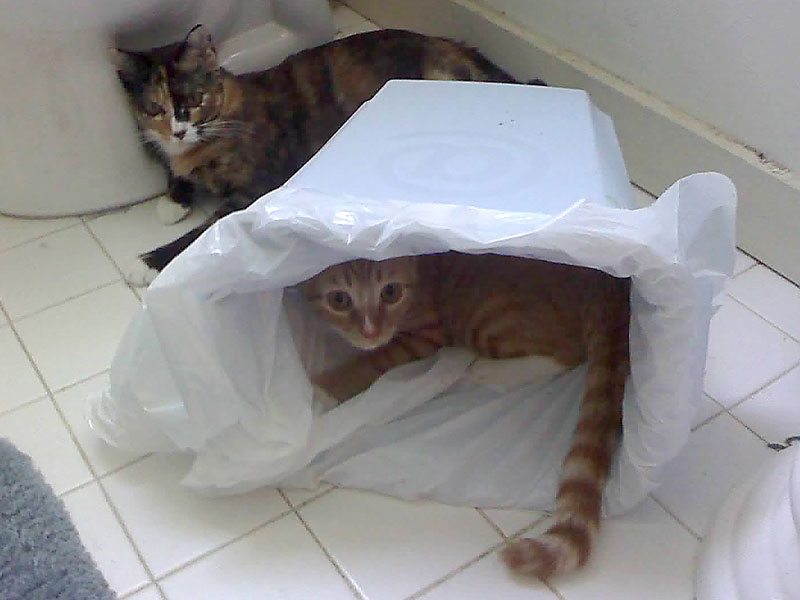 Back at home, the mauling of my manhood continued. My sweet babies Kong and Estelle refuse to stop endearing me with their delightful antics. They’re probably almost a year old by now, yet they still scamper through the apartment like kittens and explore their world with wide-eyed curiosity. When I’m laying in bed each morning with two furry girlies crawling all over me and purring in my face, I can’t help but snooze a little longer and allow them to keep stealing my affections. Shoot – Will I ever be able to show my face on the mean streets of Silicon Valley again? Can I somehow redeem myself by adopting a big, manly-man dog? Maybe a pit-bull, or a Rottweiler, or a Komodo Dragon? Instead, my friend Michelle left on vacation for the week and asked me to care for her wittle bunny wabbit, Sasha. Now real G’s know that bunnies ain’t no joke. Those powerful back legs and Freddy-Kruger-like claws can do some serious damage when they get spooked, as I’ve found out the hard way. Plus that fur ain’t nuttin’ nice on my allergies. Perhaps against my better judgment, I let Sasha run loose in the apartment when I’m home. Kong and Estelle are curious about her, but they ultimately defer to her dominant character. Sasha leaves small puddles and hard little pellets everywhere as a reminder that she just don’t give a f#@%. Now that’s gangsta.